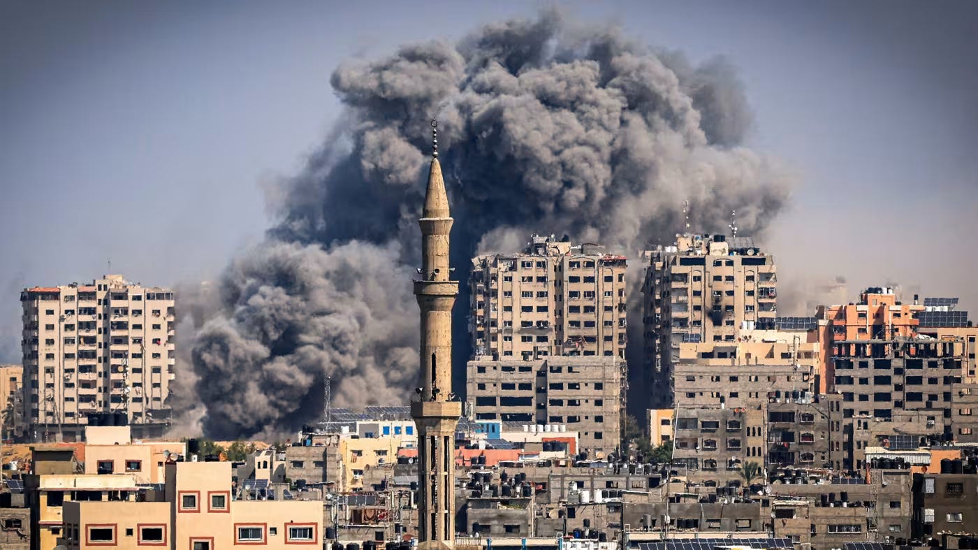 The Israeli response to the October 7th massacre, where 1,000 Israeli civilians were slaughtered by Hamas terrorists, has been anything but proportional. Despite assurances from the Western world that they were acting under restraint, there have been no attempts by Netanyahu to limit civilian casualties or push for hostage negotiations - instead, he has unleashed a torrent of bombs and infernos, turning Gaza, a city once thriving with life, into a massive graveyard.